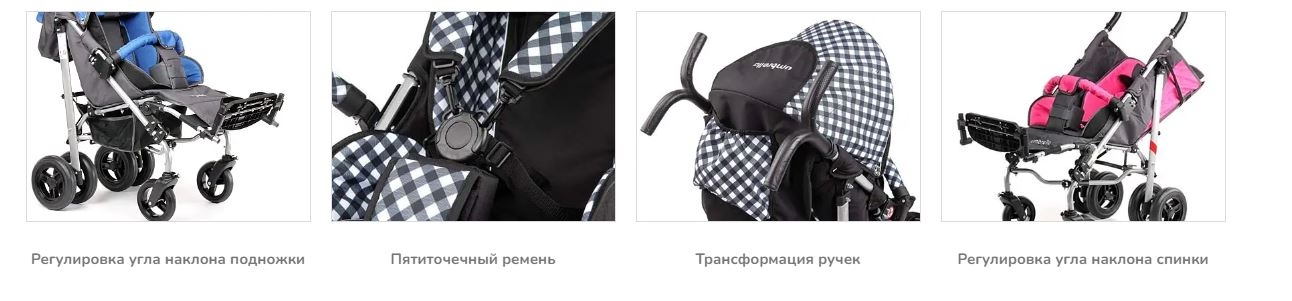 - Подножки с регулировкой угла наклона и длины, с ремнями фиксирующими стопы.