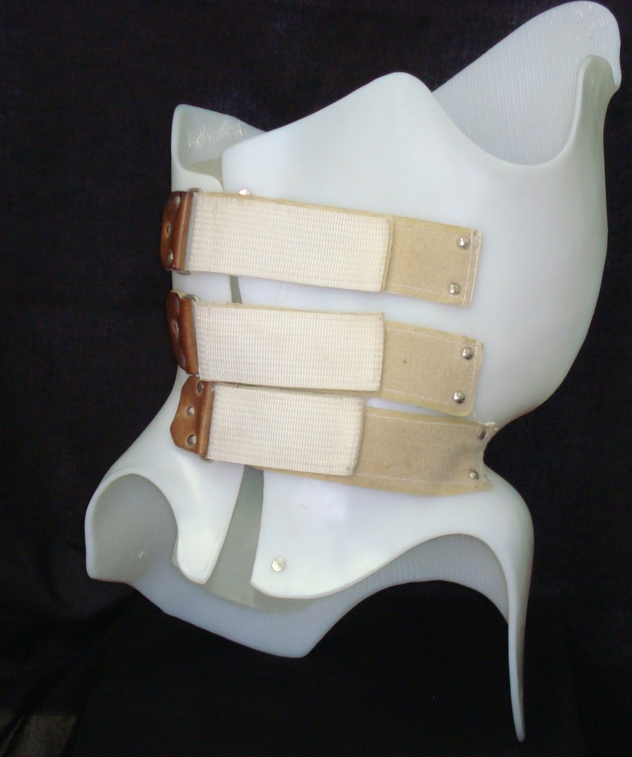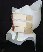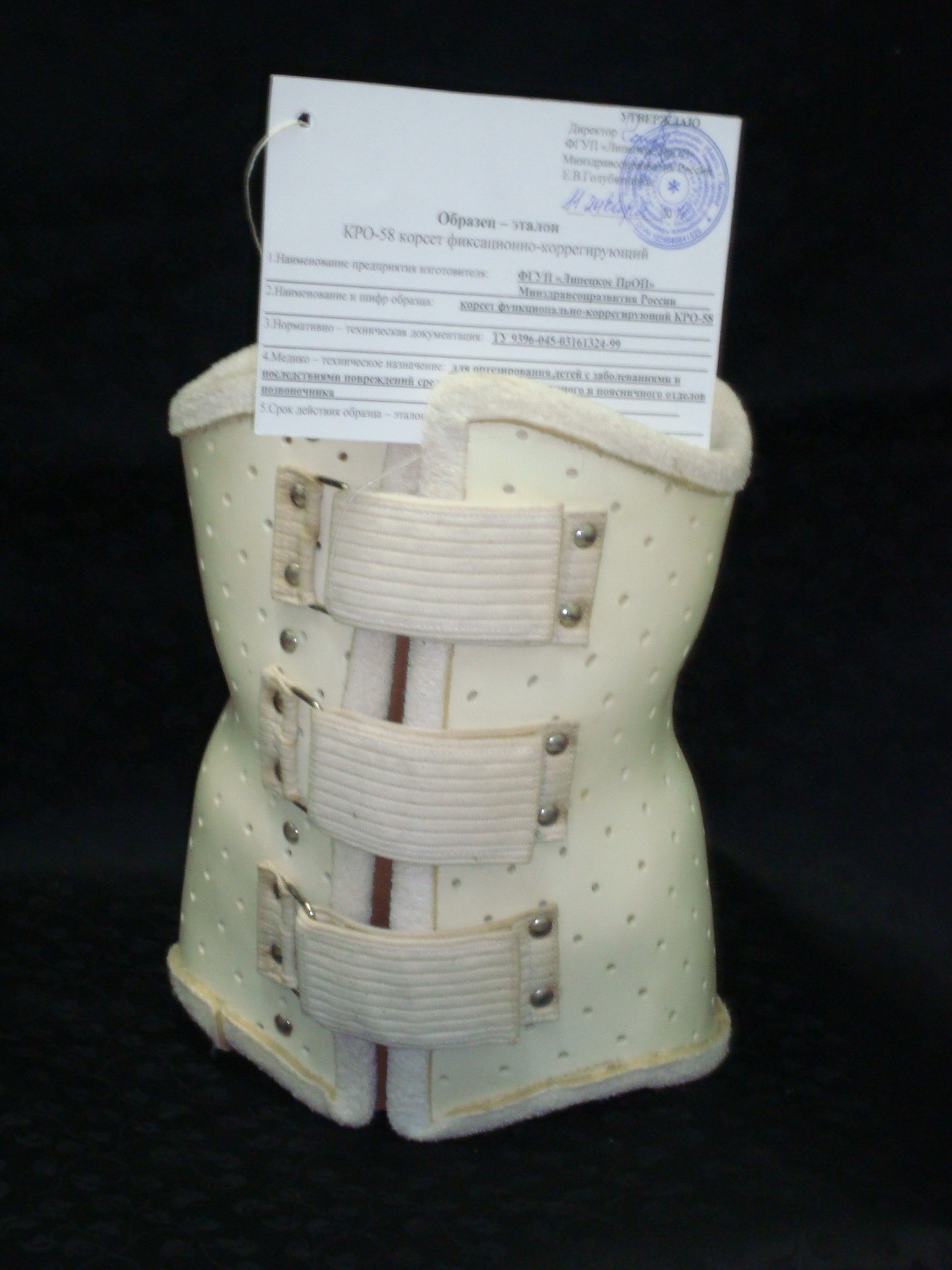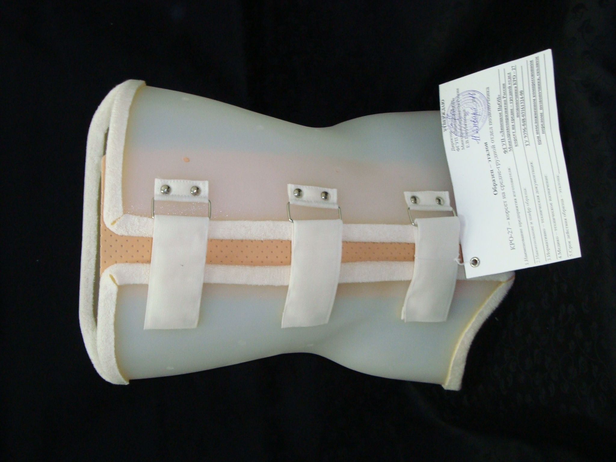 Корсеты - ортопедические устройства, предназначенные для фиксации, разгрузки и коррекции деформаций в различных отделах позвоночника. Их основу обычно составляет металлический каркас из шин, на котором крепят гильзу корсета. Гильзу изготовляют из кожи, текстильных материалов или пластмасс. По конструкции различают гильзы сплошные и скелетированные, или окончатые. В зависимости от основного целевого назначения и конструктивных особенностей различают более 20 видов корсетов.